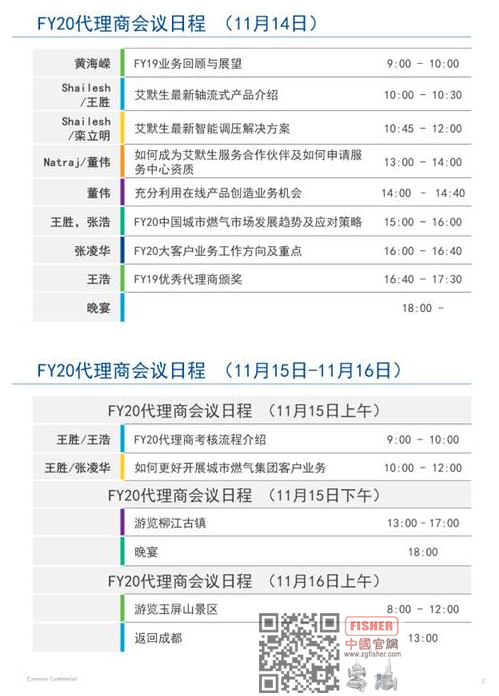 費(fèi)希爾久安FY20業(yè)務(wù)合作伙伴會(huì)議于2019年11月14日-16日在美麗的四川瓦屋山舉行。FY20代理商會(huì)議內(nèi)容包含:FY19業(yè)務(wù)回顧與展望、艾默生最新軸流式產(chǎn)品介紹、艾默生最新智能調(diào)壓解決方案、如何成為艾默生服務(wù)合作伙伴及如何申請(qǐng)服務(wù)中心資質(zhì)、充分利用在線產(chǎn)品創(chuàng)造業(yè)務(wù)機(jī)會(huì)、FY20中國(guó)城市燃?xì)馐袌?chǎng)發(fā)展趨勢(shì)及應(yīng)對(duì)策略、FY20大客戶業(yè)務(wù)工作方向及重點(diǎn)、FY19優(yōu)秀代理商頒獎(jiǎng)等。